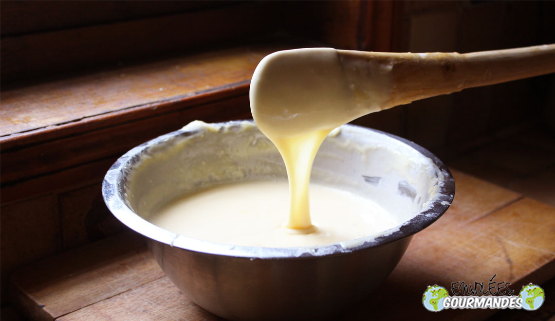 – Battre les œufs, le lait et le sucre dans un saladier